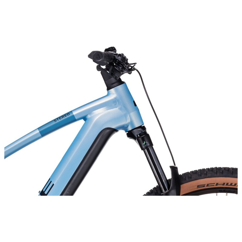 Warum sich mit Unebenheiten herumschlagen, wenn man sie einfach wegbügeln kann? Das Stereo Hybrid 120 Pro setzt auf ein erstklassiges Fahrwerk von RockShox, das genau das tut. Die Kombination aus Federgabel und Dämpfer sorgt dafür, dass Wurzeln, Steine und Löcher ihren Schrecken verlieren. Es geht nicht nur um Komfort, sondern um Vertrauen: Das Bike klebt förmlich am Boden und gibt dir die Sicherheit, auch in kniffligen Passagen die volle Kontrolle zu behalten. Es ist das ideale Setup für alle, die ein bequemes, aber reaktionsfreudiges E-MTB suchen.